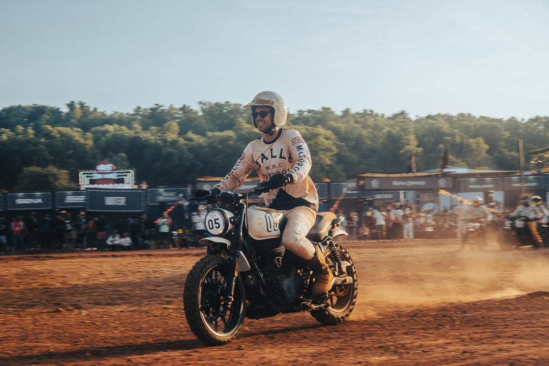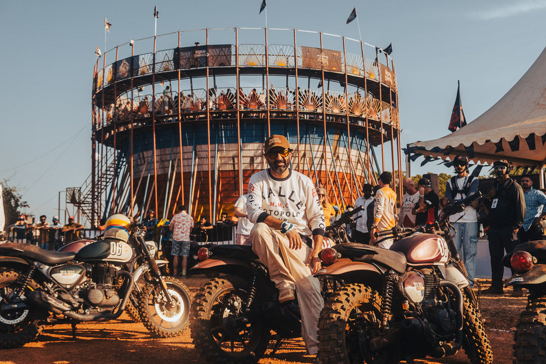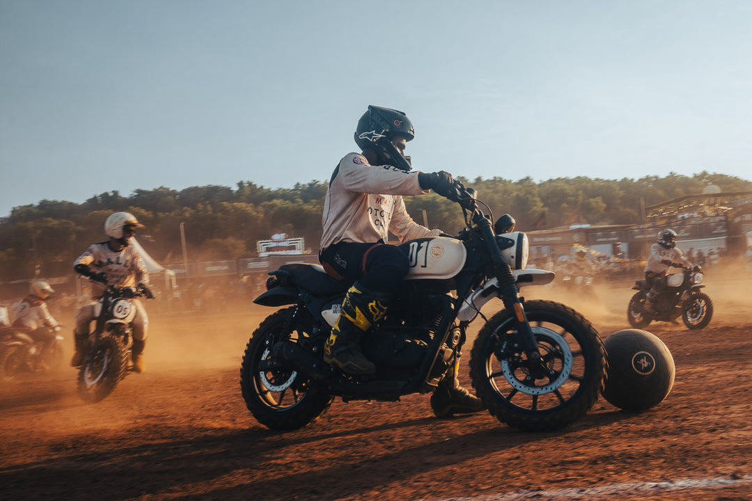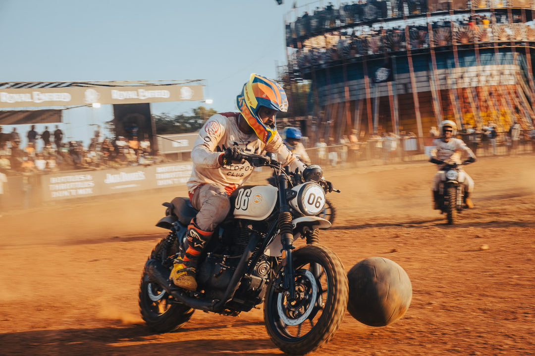 Royal Enfield’s chairman, Sid Lal, had joined the crowd, and every kick, turn, and throttle twist was met with roars from the crowd. In the twelfth minute of extra time, after a chaotic cluster of motorcycles locked together, referee Ash Chikhlia dove into the ruck to free the ball and restart play.