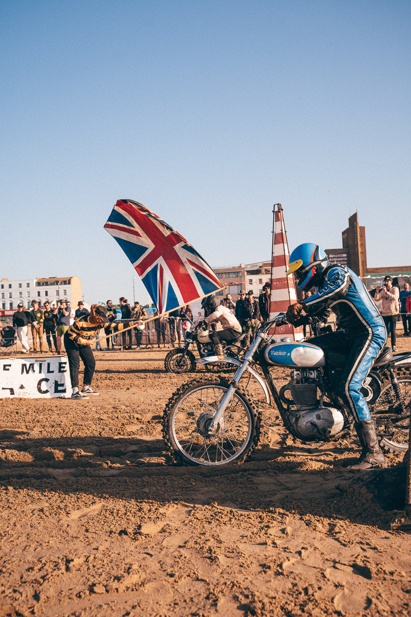 We couldn’t be more excited to welcome everyone back for 2 full days of wild, fun and fast Beach Racing on the beautiful Margate Sands. This year the stars have aligned and the gods are on our side, with perfect tide times and racing starting as soon as the tide goes out, giving us all day to race through each and every unique race class, from modern, to classics, antiques, electric, lightweight and off-road motorcycles.